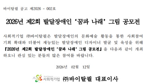 2026 »çȸÀû±â¾÷ (ÁÖ)¹ÙÀÌÅ»ÇÊ_Á¦2ȸ ¹ß´ÞÀå¾ÖÀÎ '²Þ°ú ³ª·¡' ±×¸²°ø¸ðÀü